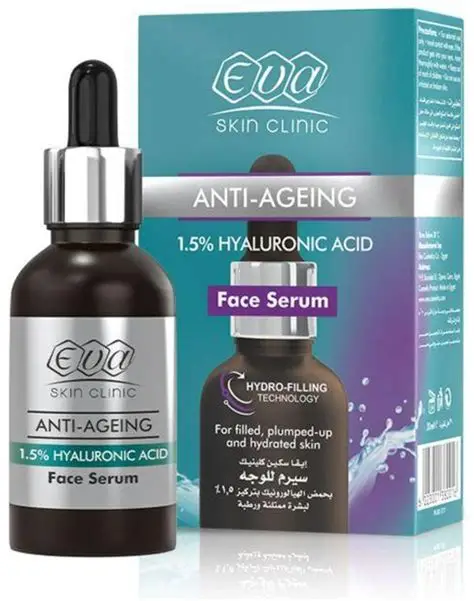 سيروم إيڤا سكين كلينيك للوجه بحمض الهيالورونيك (30 مل) هو سيروم مركّز يعمل على ترطيب البشرة بعمق وعلى مستويات متعددة، ويملأ الخطوط الدقيقة والتجاعيد، ليمنح البشرة مرونة ومظهراً ممتلئاً وأكثر نضارة