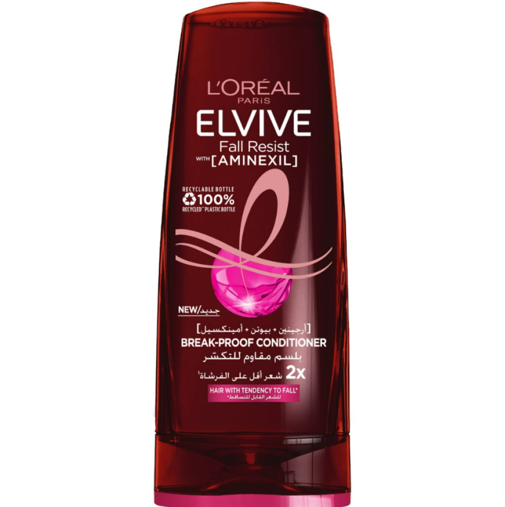 بلسم لوريال إلفيف ضد تساقط الشعر (400 مل)، بلسم مُقوٍّ يُستخدم لتغذية وتنعيم ألياف الشعر والمساعدة في تقليل تساقطه