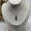 سلسلة ذهبية ذات حلقات متشابكة، يتدلى منها حلية على شكل كرة (كوكبًا بألوان زرقاء وسوداء)