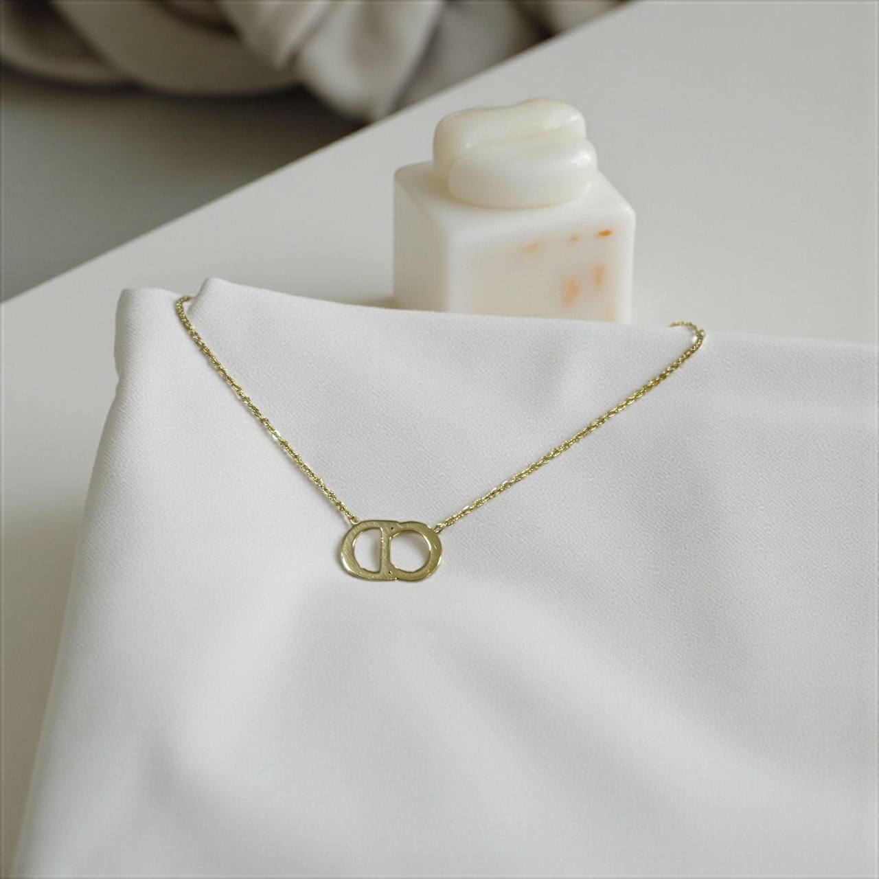 سلسة رقيقة مطلية بالذهب بتصميم يضم حلقتين متشابكتين على شكل حرفي “CD