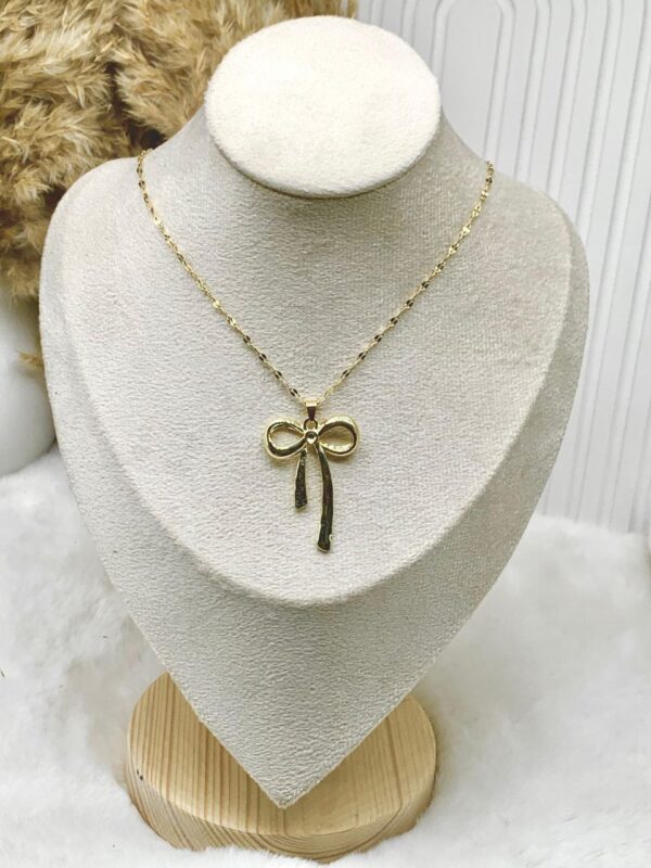 سلسلة رقيقة مطلية بالذهب مع قلادة بشكل فيونكة أنيقة