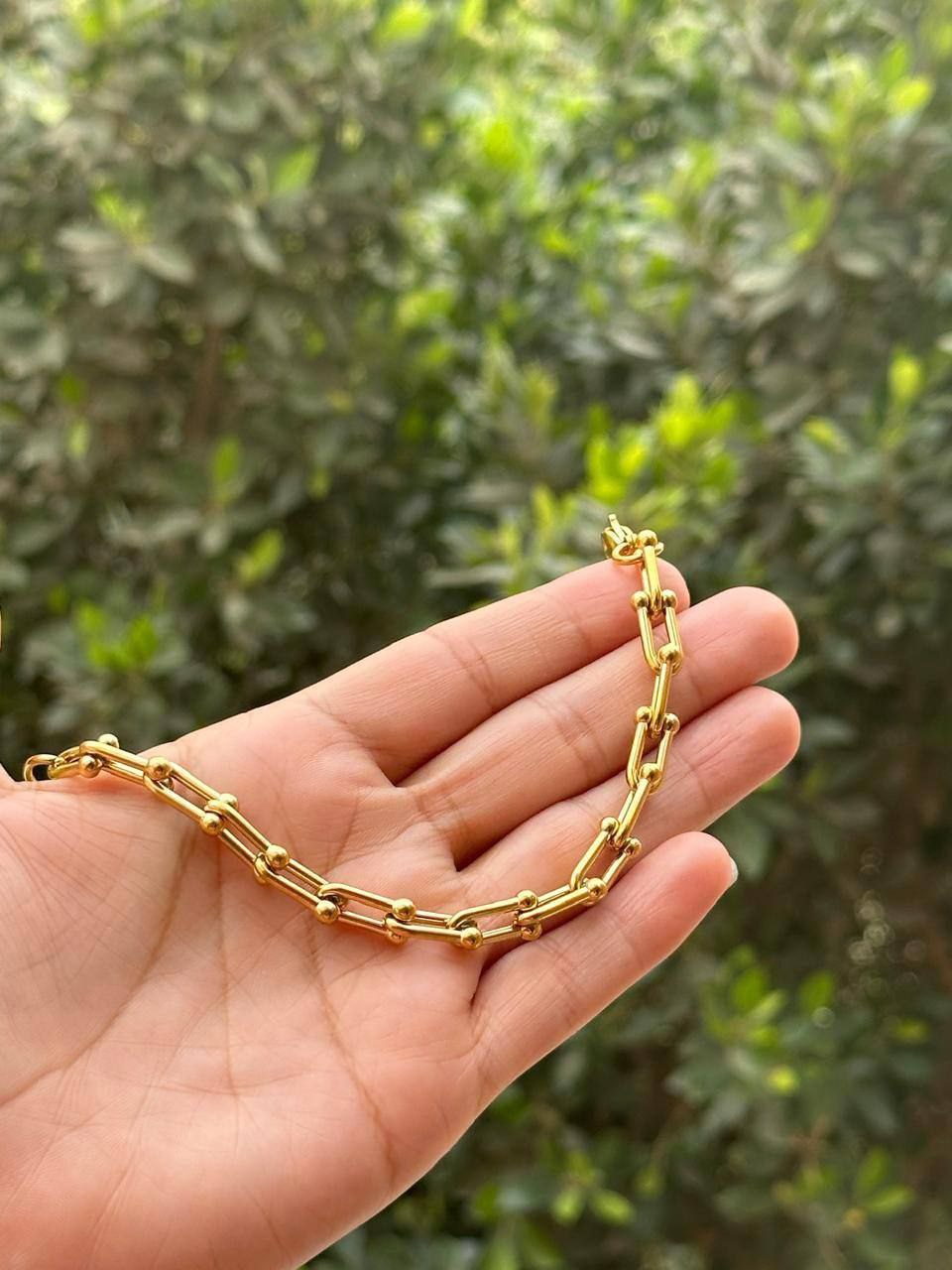 إسوارة مطلية بالذهب بتصميم وصلات “U” متصلة مزينة بكرات صغيرة
